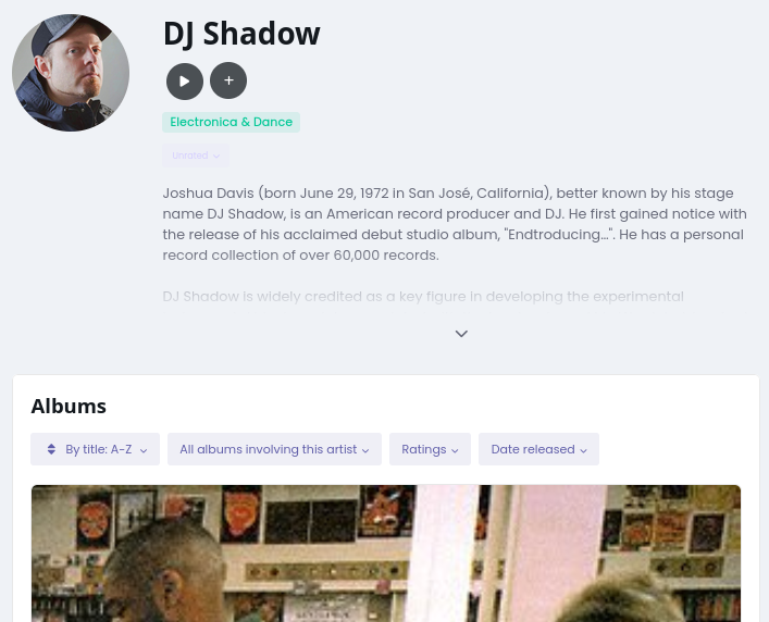 If "Show supplementary information" is checked then additional information about individual items in your library are added. For example, artist bios and images: